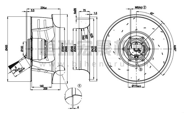 德國(guó)ebmpapst R4D450-AK01-01/F01離心風(fēng)機(jī)結(jié)構(gòu)圖