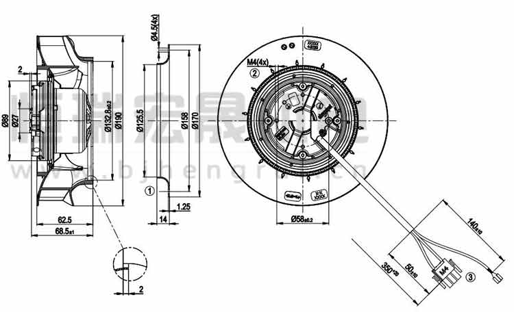 德國ebmpapst R3G190-RB01-06離心風機結構圖