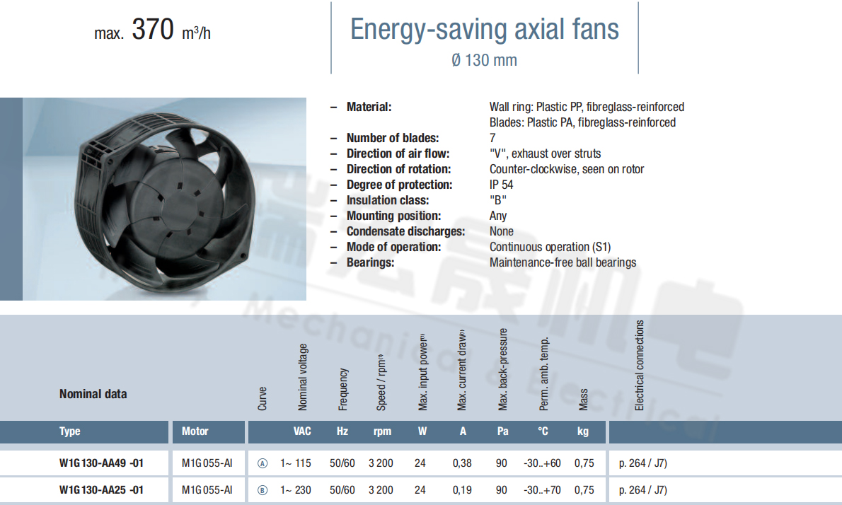 W1G130-AA25-01 電壓:230v 電流:0.19A 功率:24W 轉(zhuǎn)速:3200r/min