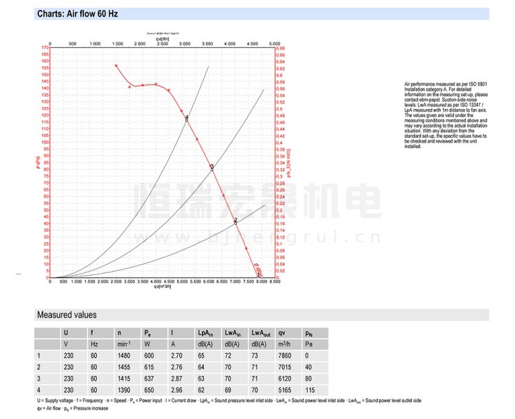 德國ebmpapst S4E450-AO09-01 軸流風機結構風量圖