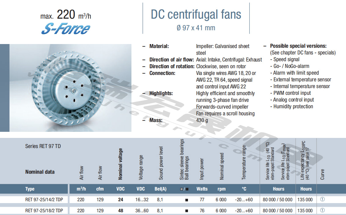 北京恒瑞宏晟低價(jià)供應(yīng)RET97-25/14/2TDP RET97-25/18/2TDP緊湊型風(fēng)機(jī),適用于通風(fēng)散熱制冷行業(yè)