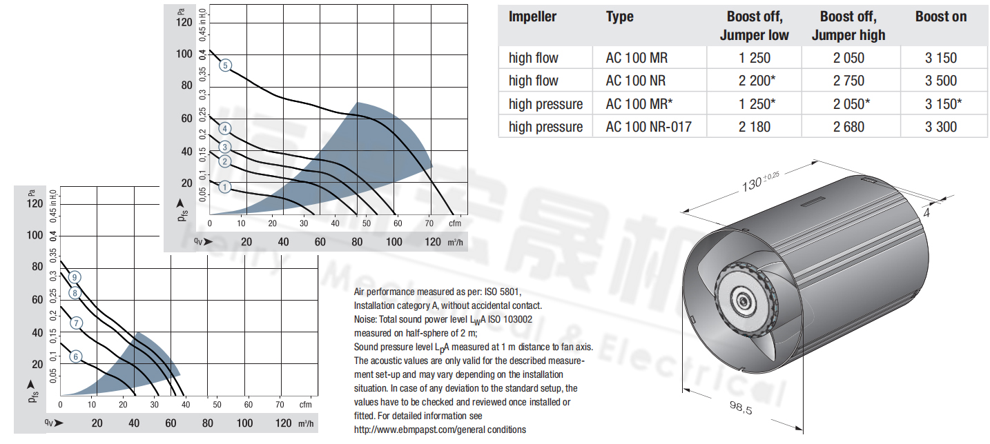 德國ebmpapst原裝AC100MR AC100NR AC100HR風(fēng)機(jī)的曲線圖
