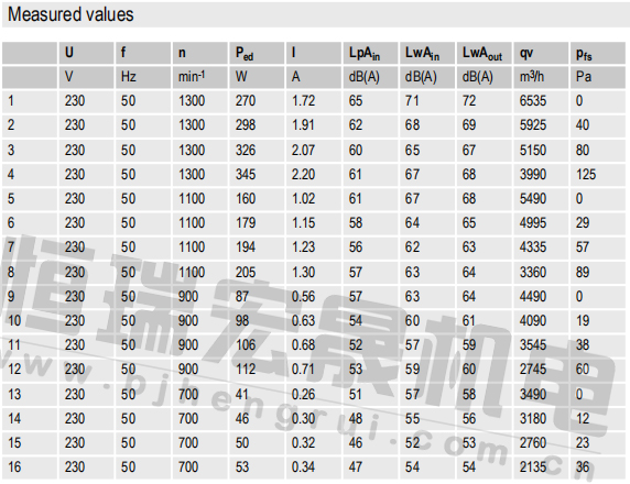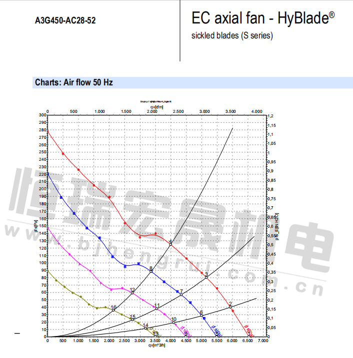 原裝軸流ebm風機A3G450-AC28-52的曲線圖