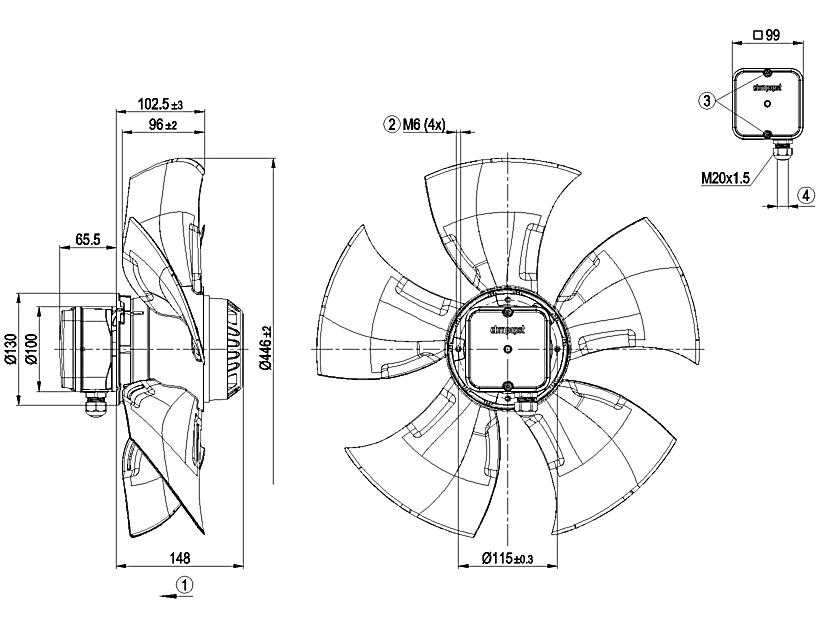 德國ebm全新A4E450-AO09-01軸流風(fēng)機(jī)規(guī)格圖