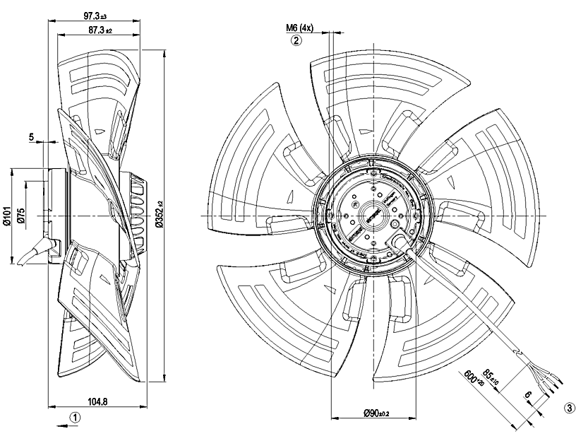 原裝軸流ebm風(fēng)機A6E350-AN24-01的規(guī)格圖