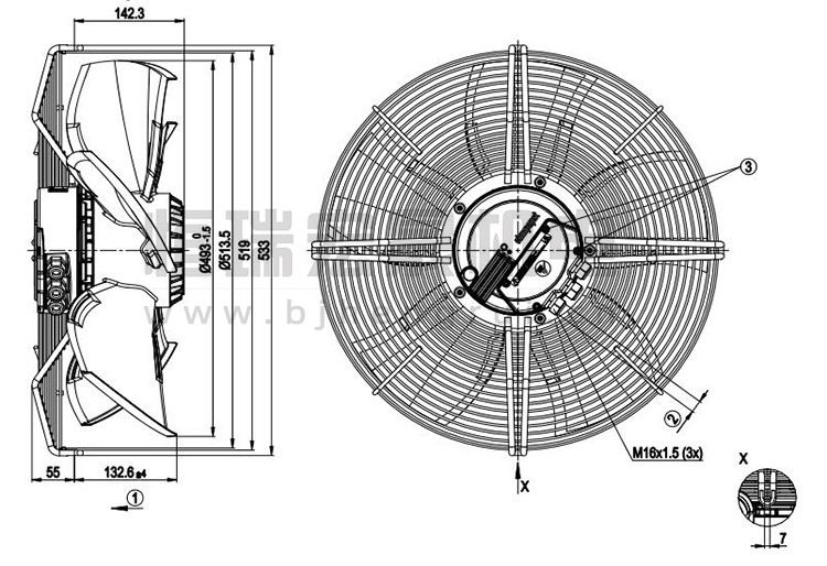 S3G500-BE33-01 ebmpapst 印刷設(shè)備風(fēng)機(jī) 安裝尺寸說明