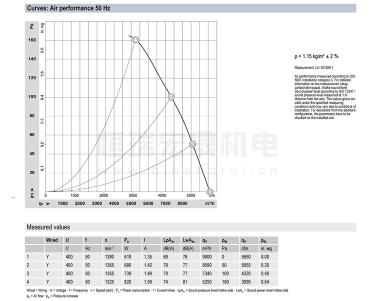 德國ebmpapst S4D500-AD01-05 軸流風機結(jié)構(gòu)風量圖