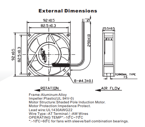 ADDA風(fēng)機(jī) 92*92*25MM 115V 22.8CFM AA9251MS-AW