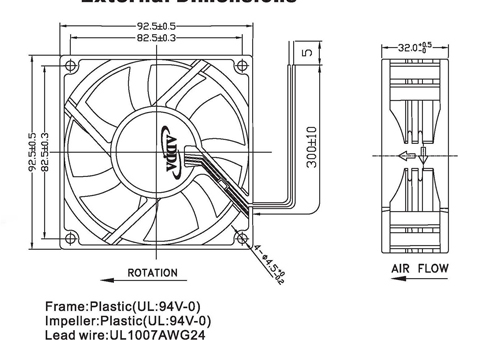 ADDA風(fēng)機(jī) 92×92×32mm 24V 68.954CFM AQ0924HB-Y71GL