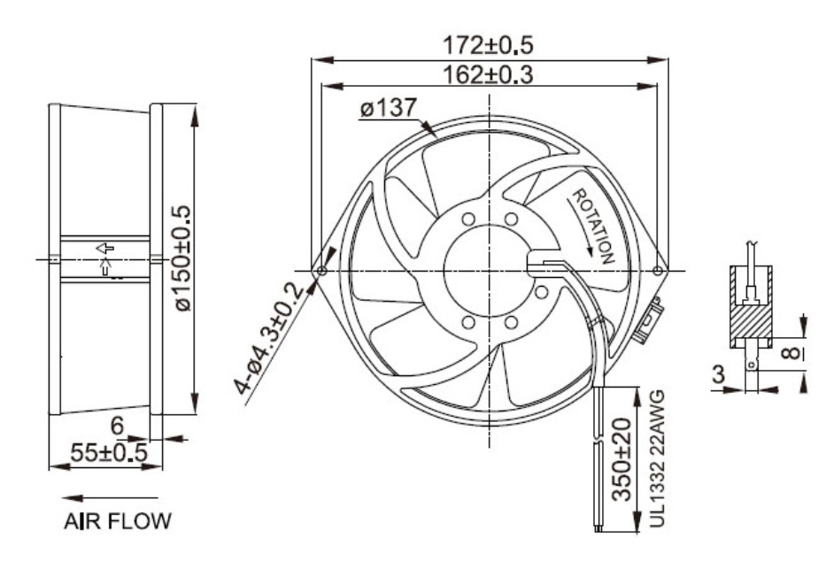 扇葉材質(zhì): 工業(yè)塑膠PBT PC 尼龍或金屬材質(zhì)