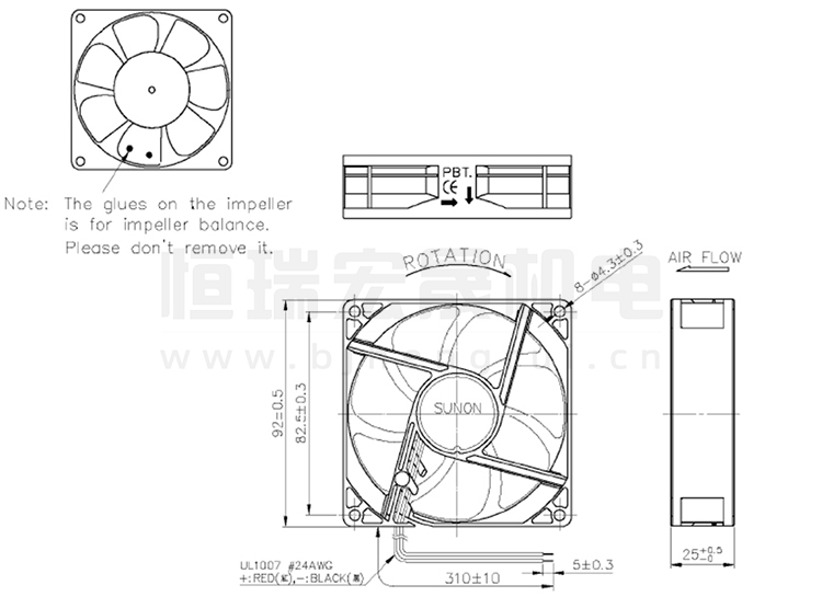 SUNON建準風機 92*92*25mm GE92252B1-000C-AE9